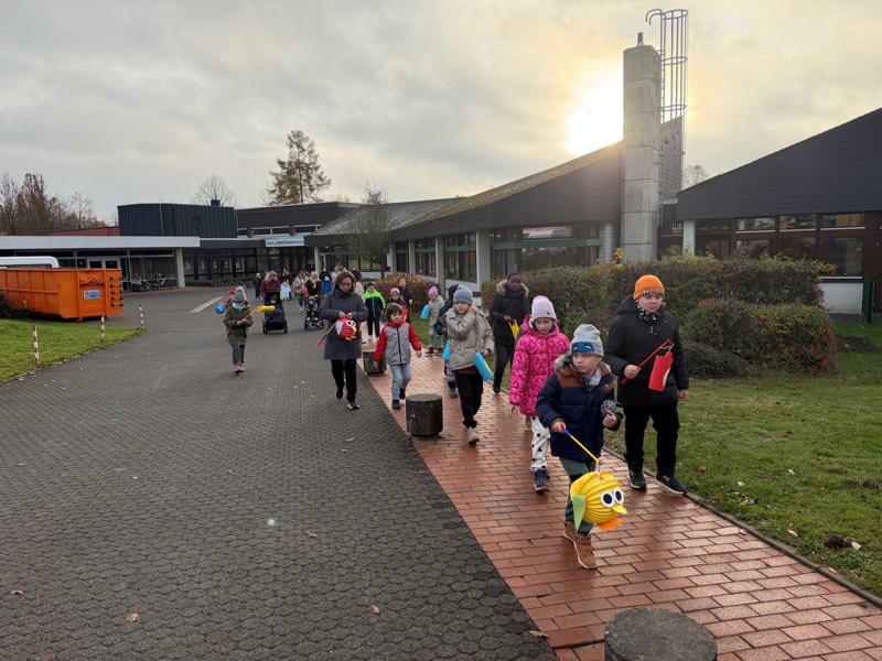 Die Grundstufenklassen haben sich am 11. November getroffen, um gemeinsam Sankt Martin zu feiern. Natürlich durfte dabei auch ein Laternenumzug nicht fehlen. Direkt nach Schulbeginn zogen die Schülerinnen und Schüler mit ihren selbstgebastelten Laternen durch die Straßen rund um die Paul-Zimmermann-Schule, begleitet von Musik und Gesang.